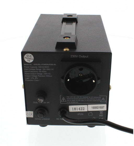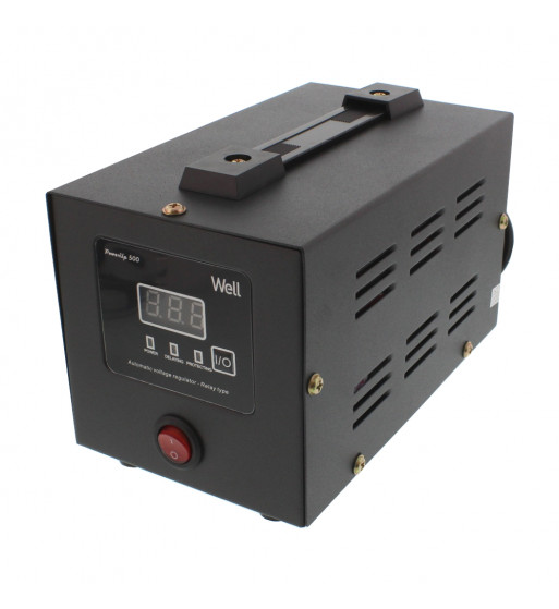 STABILIZATOR AUTOMAT DE TENSIUNE CU RELEU 500VA, NEGRU WELL