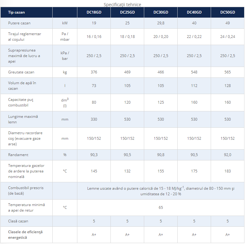Puteri intre 14 – 150 kW, tipuri de combustibil: lemn, carbune, peleti, bricheti (puteri si combustibil in functie de modelul cazanului);