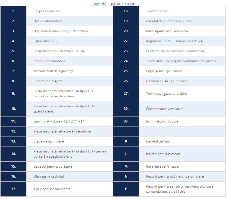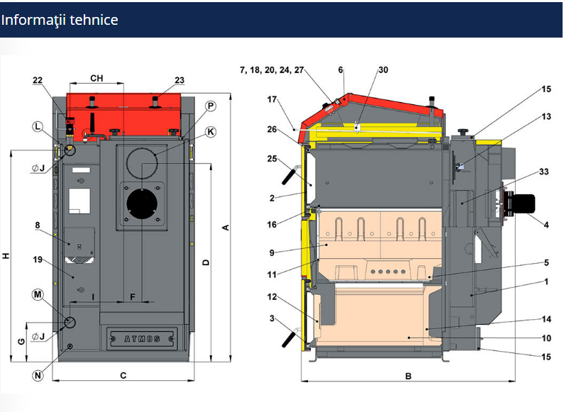 Corpul cazanului este fabricat din tabla de otel, ventilator controlat prin termostate;