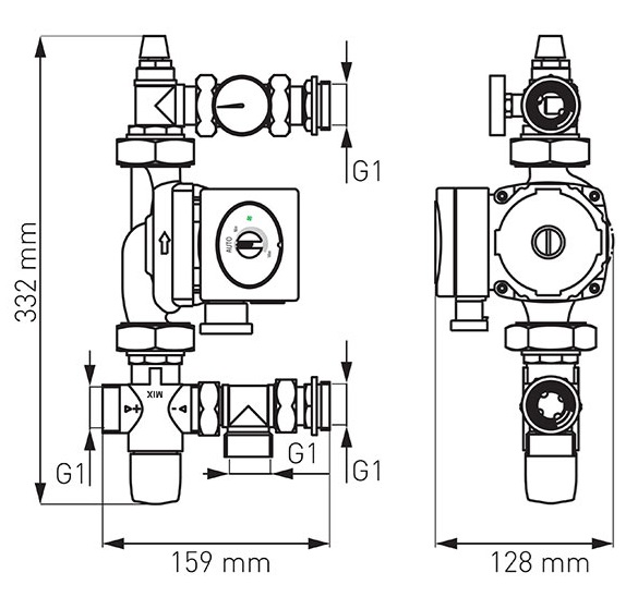 Grupul de amestec fără pompă serveste la scăderea și menținerea temperaturii dorite a lichidului de încălzire în sistemul de încălzire în pardoseală.
