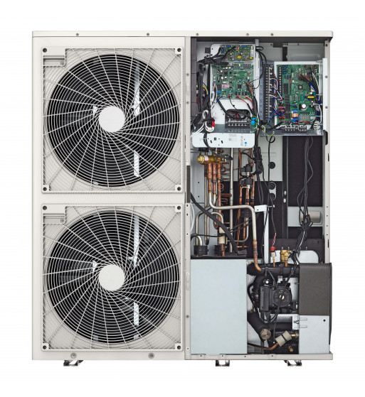 Prin conceptul all-in-one se întelege faptul că principalele componente hidraulice ale pompei de căldură cum ar fi pompa, vasul de expansiune, aerisitorul automat, supapa de siguranță, sunt încorporate în unitatea exterioară. În interiorul clădirii se va monta un panou de comandă elegant prin intermediul căruia utilizatorul reglează funcționarea pompei de căldură.