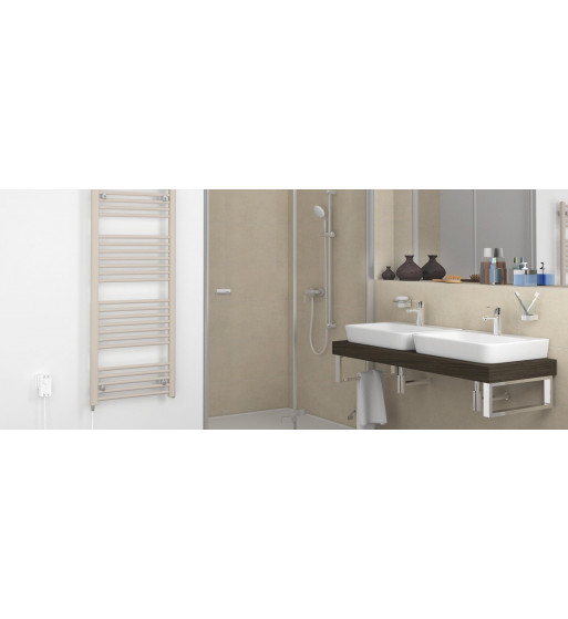 Radiatorul de baie KORALUX-E este echipat cu un element de încălzire electric. Culoarea standard este alb RAL 9016. Elementul încălzitor electric este echipat cu cablu de conectare alb. Pe bază de comandă pot fi achiziționate radiatoare KORALUX-E colorate selectate din paletarul de culori Korado. Pentru vizualizare paletar de culori Korado, vă rugăm dați click aici.