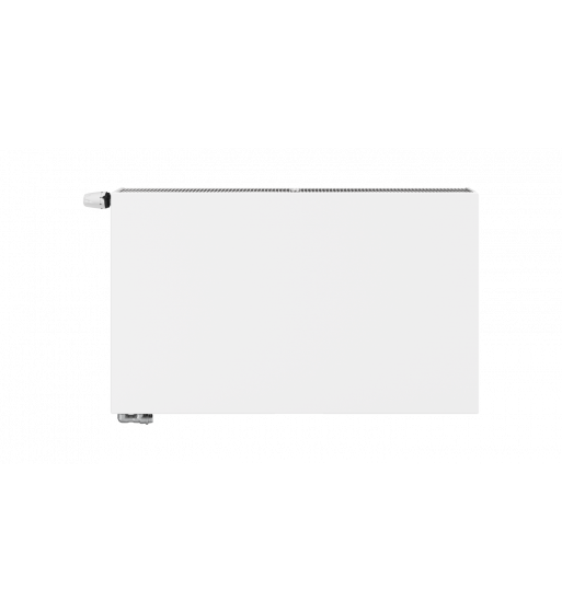Radiator panou de top, cu suprafață plană, fabricat din tablă de oțel microaliat, ventil compact, destinat montării în instalații termice închise (sub presiune) cu posibilitate de conectare în partea de jos, stânga.