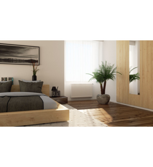 Radiator panou de top, fabricat din tablă de oțel microaliat, ventil compact, destinat montării în instalații termice închise (sub presiune) cu posibilitate de conectare in partea de jos, dreapta.