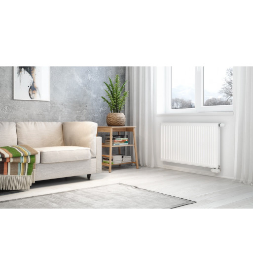 Radiator panou de top, fabricat din tablă de oțel microaliat, ventil compact, destinat montării în instalații termice închise (sub presiune) cu posibilitate de conectare în partea de jos, dreapta sau stânga.