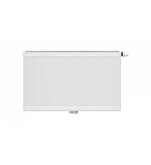 Radiator panou de top, fabricat din tablă de oțel microaliat, ventil compact, destinat montării în instalații termice închise (sub presiune) cu posibilitate de conectare universală, permite conectarea în partea de jos mijloc sau partea de jos dreapta.