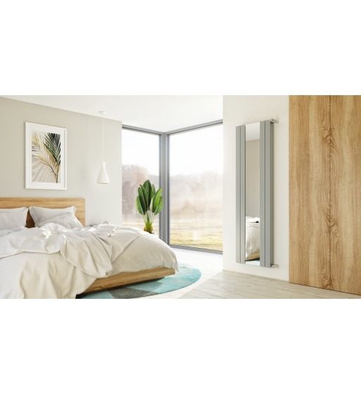 Radiator de design fabricat din profile de oțel aliniate vertical, cu oglindă înglobată, destinat montării în instalații termice închise (sub presiune), cu posibilitate multiplă de conectare și montare.