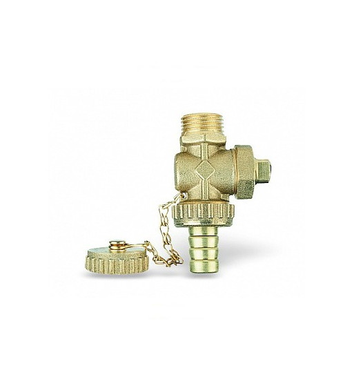 Robinet de golire pentru cazane cu racord de furtun, dop și lanț.
