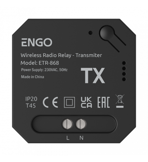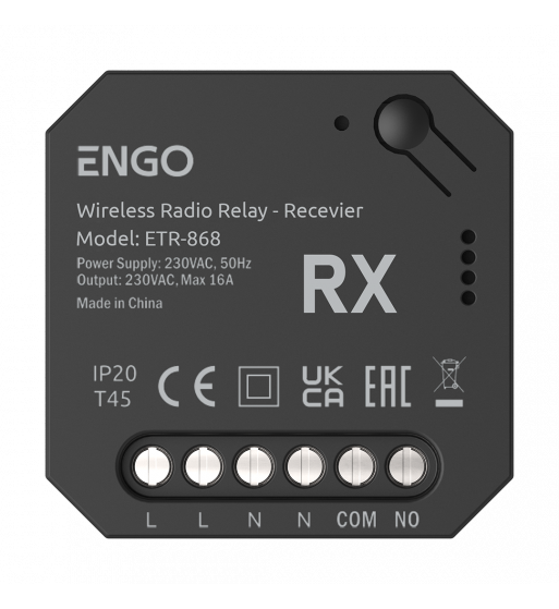 Releu fără fir, controlat prin radio, 868Mhz, 230V